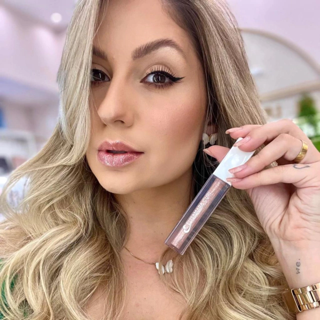 Nossos gloss deixam um brilho e um efeito molhado perfeito nos lábios, possuem uma textura de gloss leve e confortável.
